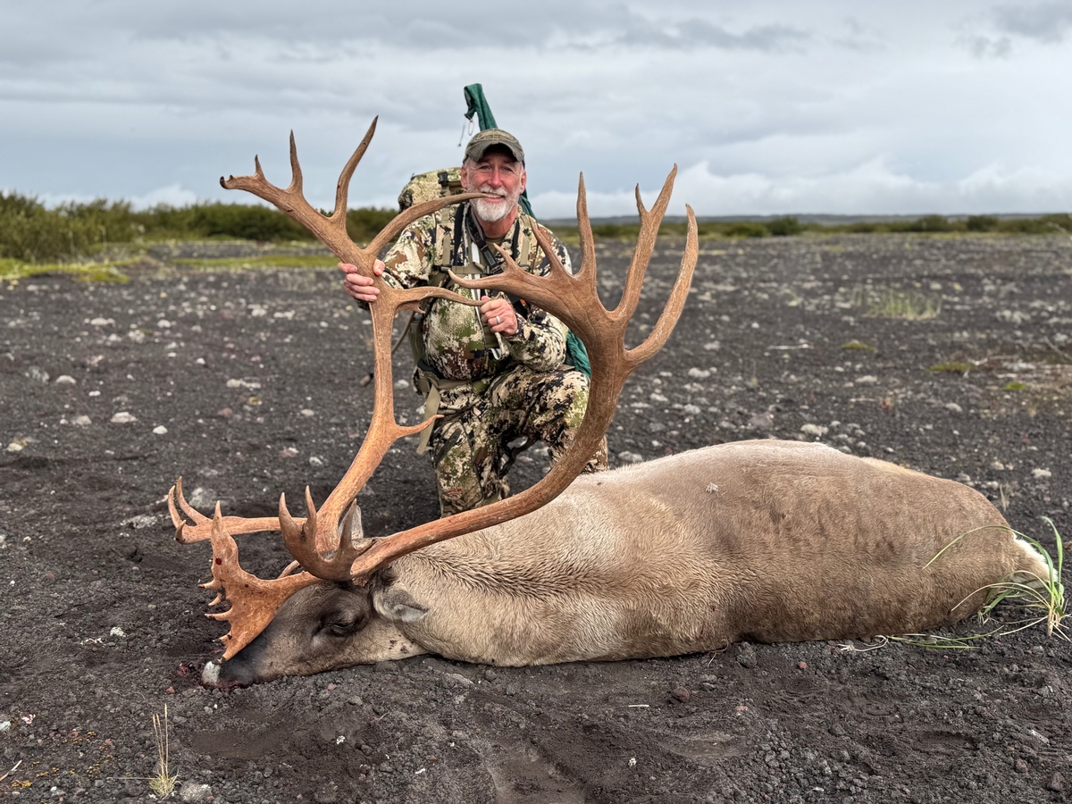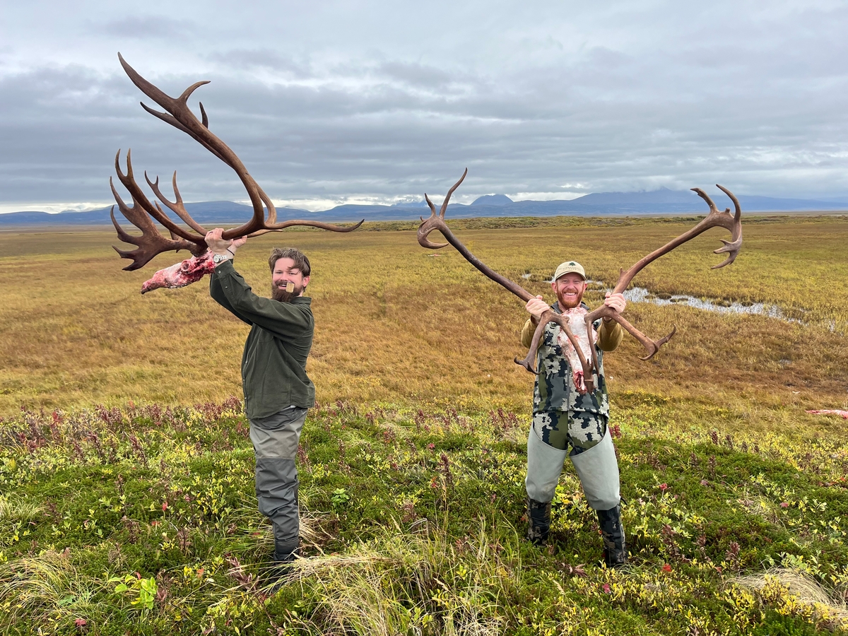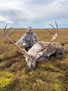 Our Alaskan Peninsula Caribou hunts are operated out of our Legendary David River Bear Camp approximately 20 miles SW of Nelson Lagoon. Once arriving at David River on the Bering Sea, you will be hunting either on our two Federal Guide Concessions or onto State Land where bands of caribou have been located. Although the Lower Alaskan Peninsula Herd is not a migrating herd and is smaller than some other herds in the state, they are well known for their great genetics and the potential for a Boone and Crockett animal. You can expect to harvest a bull in the 350 - 400” class with a few bulls a year going over 400”. These hunts are 7 days in length and we are now operating every September. Hunt dates are Sept. 16 - 22 and Sept. 24 - 30. On odd numbered years (2025, 2027 etc), we access our hunting areas primarily by airplane where you will be flown out to a spike camp location with your guide to a camp that where trophy bulls have been spotted or expected. This is a tent based hunt where you will be hunting spot and stalk on foot. On the even numbered years (2026, 2028 etc), all of our hunts are based directly from our David River Base Camp. You will be staying in cabins each night and accessing the hunt area via 4 wheelers. This is a great opportunity to hunt in a remote trophy area but with more comfortable accommodations for those not able to or wanting to do a tent based hunt. Success and trophy quality is equal on both of these hunts.